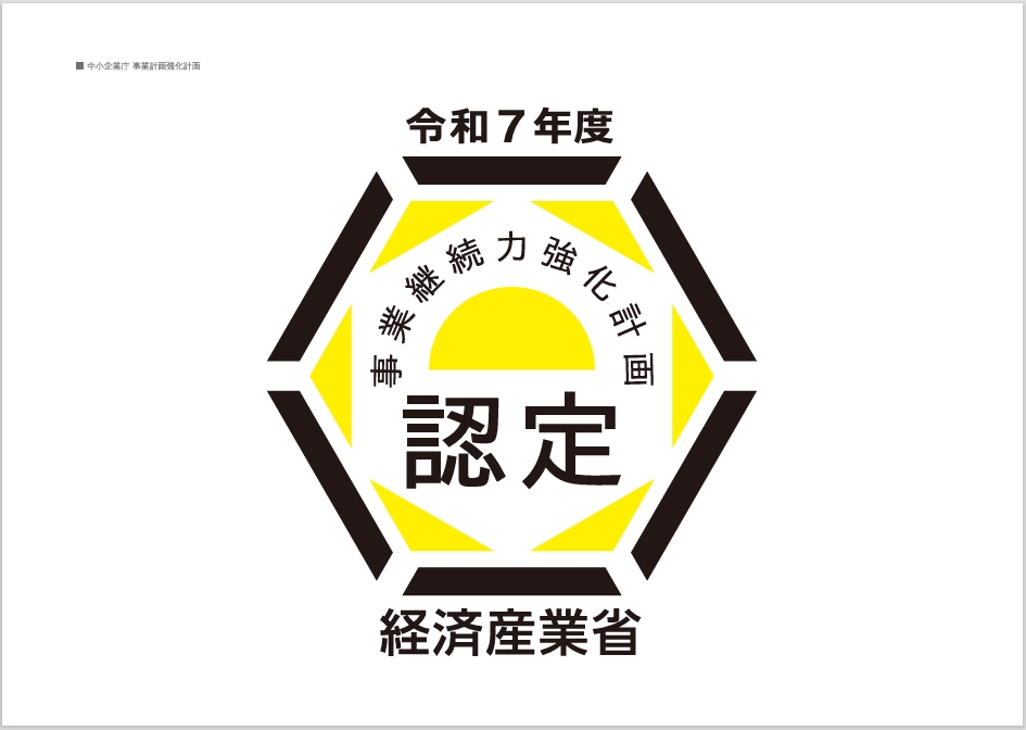 弊社は経済産業省より令和7年度事業継続力強化計画の認定企業に承認されました。